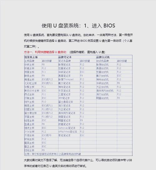 在电脑使用过程中,需要重新安装系统的情况时常发生。很多人不喜欢请人帮忙或去电脑维修店安装,而是想自己动手解决。本篇文章就是为这些新手朋友们而写的,详细介绍了U盘装系统的步骤。只要按照步骤进行操作,就能轻松安装系统。